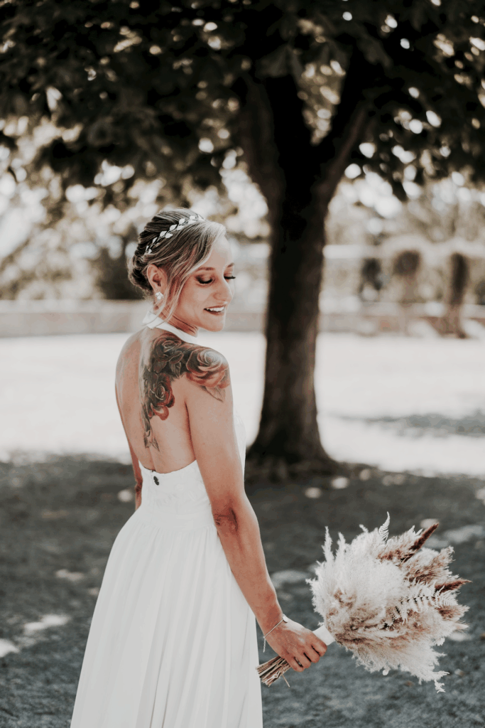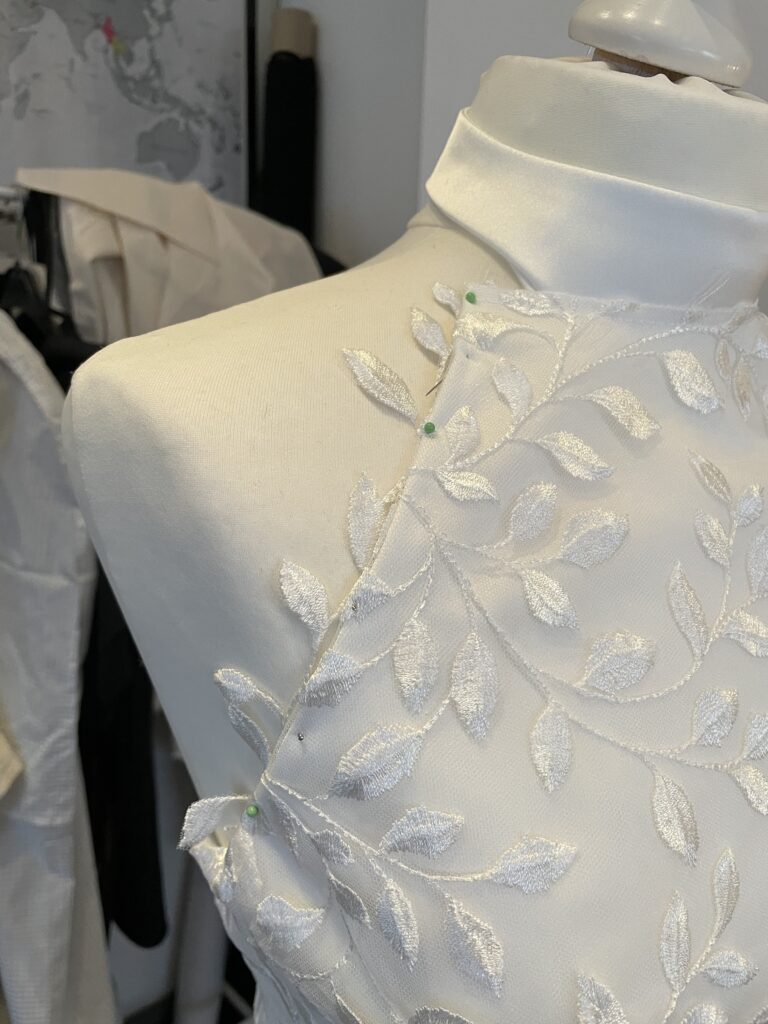 Spitzenoberteil mit kleinem Ärmel und Tüllrock